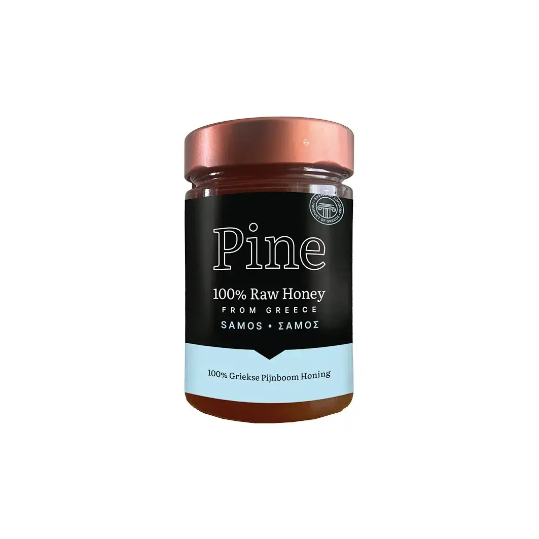 Griekse pijnboom honing is een unieke en heerlijke honing die wordt geproduceerd door bijen die zich voeden met de nectar van de Griekse pijnboom. Deze bijzondere honing heeft een rijke, amberkleurige tint en een intens aromatische smaak.
